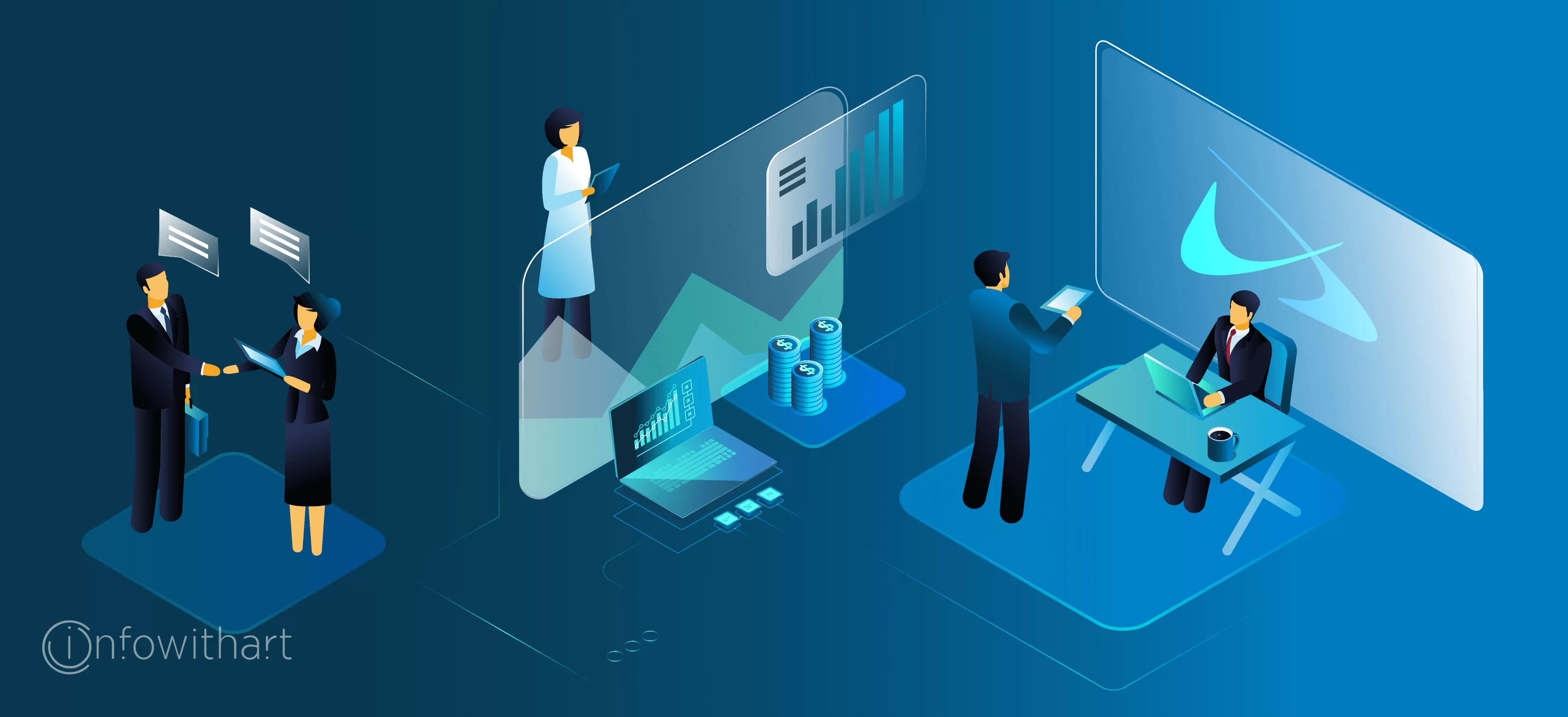 Devise a series of illustrations for the customer’s website that would show the friendly team of professional experts creating an innovative product – a cloud-based Content Services Platform. The primary goal is to present the service’s advantages and the process flow in order to raise more awareness and build trust among users.